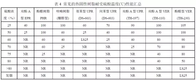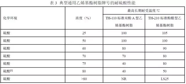 表3 是典型通用乙烯基酯樹(shù)脂牌號(hào)耐硫酸腐蝕性能的簡(jiǎn)表。